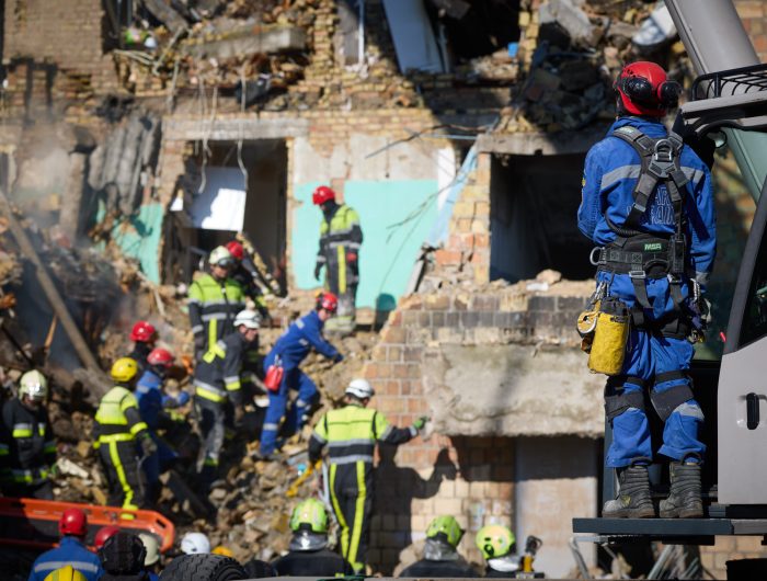 Namun bagi warga Kyiv, dampak paling nyata bukanlah pernyataan politik, melainkan puing-puing bangunan, kaca berhamburan, dan nyawa yang hilang