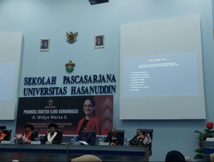 PHINISIMEDIA.COM, MAKASSAR – Mantan Juru Bicara PSM Makassar, Andi Widya Syadzwina alias Wina, resmi menyandang gelar Doktor Ilmu Komunikasi Universitas Hasanuddin (Unhas) setelah menuntaskan ujian terbuka promosi doktor di Pascasarjana Unhas.