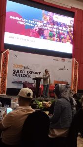 Dalam materinya bertajuk “Strategi serta Potensi Pasar Ekspor Indonesia & Sulawesi Selatan”, Arief R. Pabettingi menekankan pentingnya kesiapan pelaku usaha menghadapi tantangan global 2026, termasuk penguatan daya saing produk dan efisiensi rantai pasok.